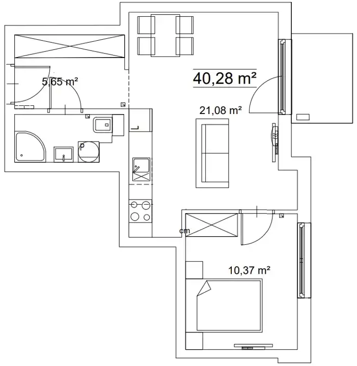 - Charakterystyka mieszkania 40.5 m2, 2 pokoje