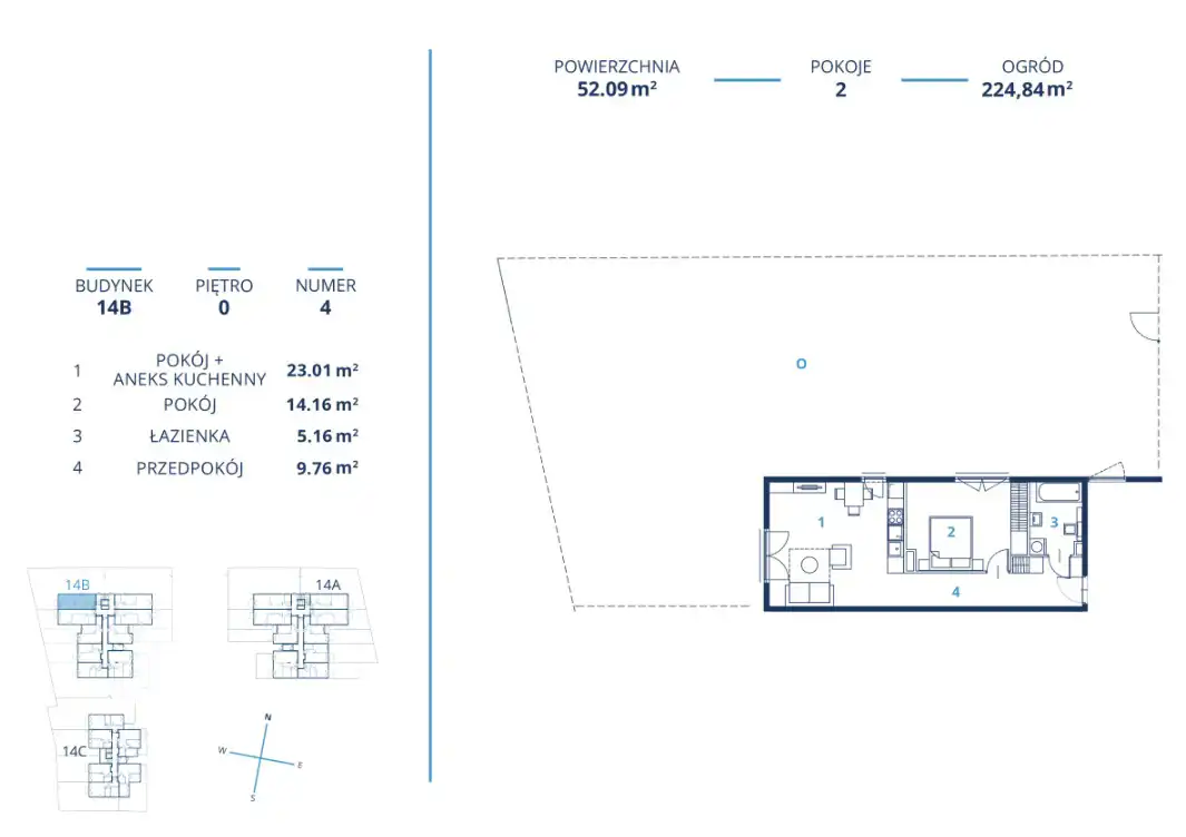 - Charakterystyka mieszkania 52.09 m2, 2 pokoje