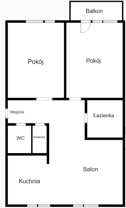 - salon z kuchnią częściowo otwartą (można zamknąć) , dwie sypialnie, łazienka, osobna toaleta oraz przedpokój