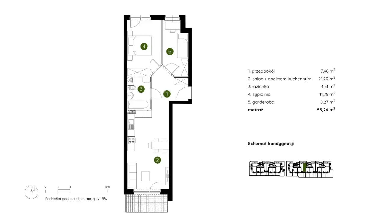 - Charakterystyka mieszkania 53.24 m2, 3 pokoje