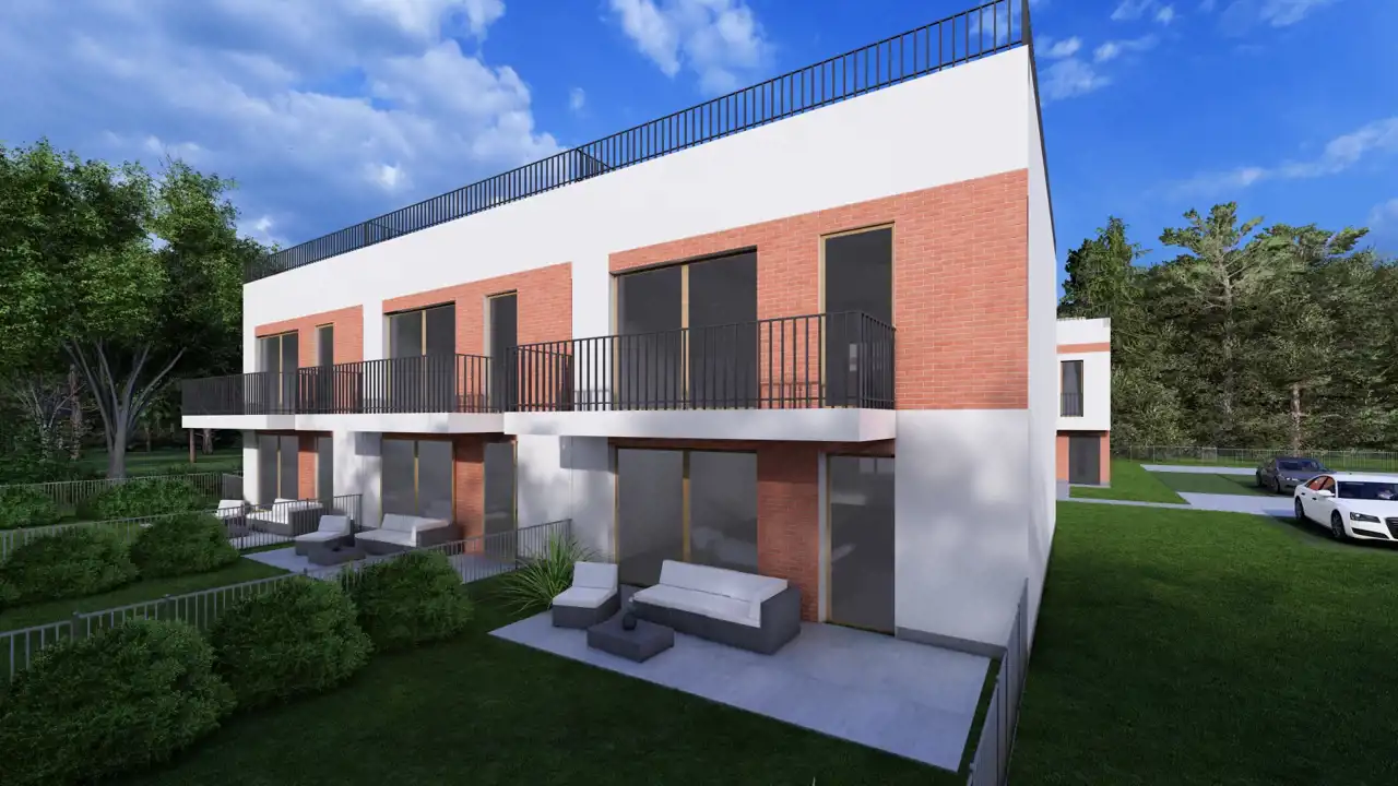 Inwestycja składa się 6 budynków 2-lokalowych tworzących estetyczne kameralne osiedle.