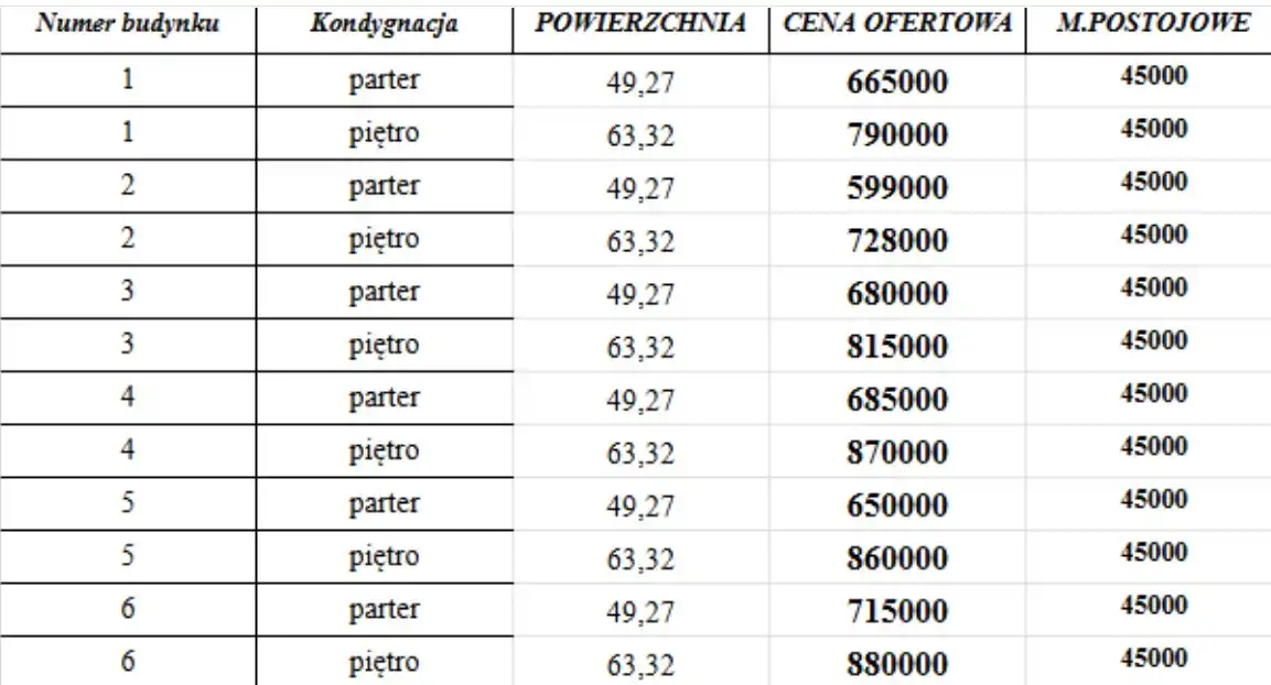 Koszt miejsca postojowego: 45.000 zł jako opcja.