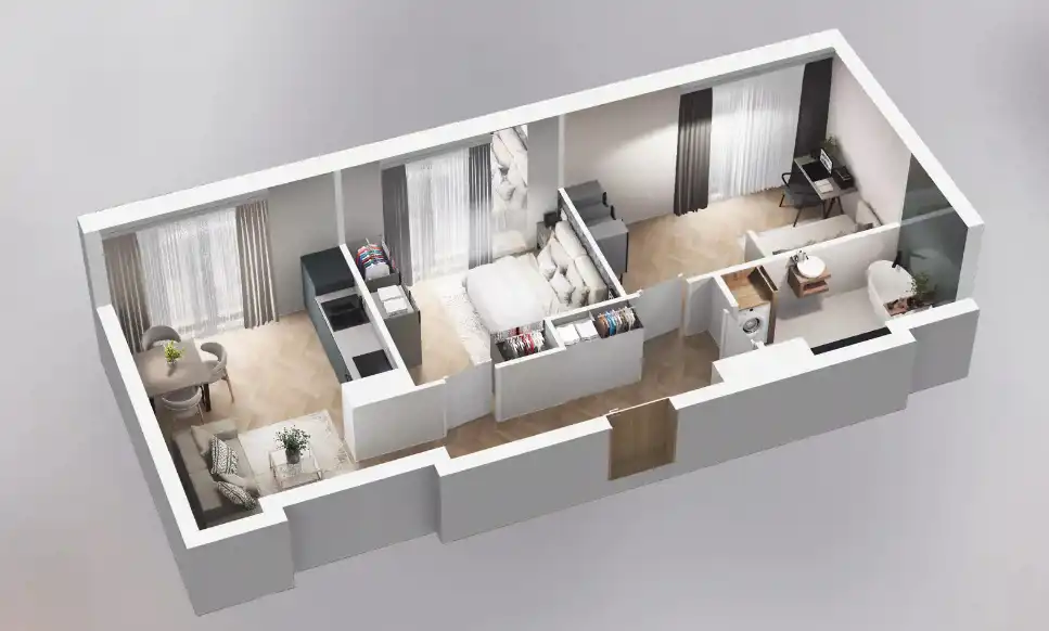 - Charakterystyka mieszkania 48.26 m2, 2 pokoje