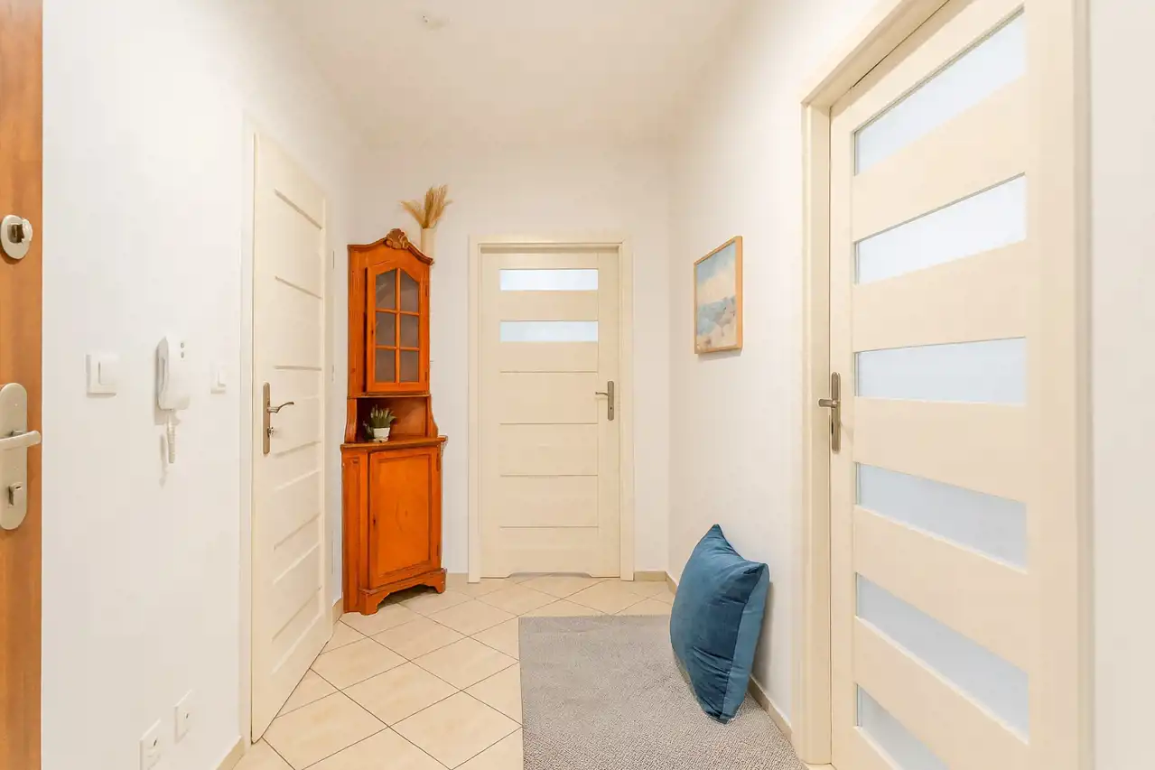 Dodatkowe pomieszczenie może pełnić rolę garderoby czy komórki lokatorskiej.
