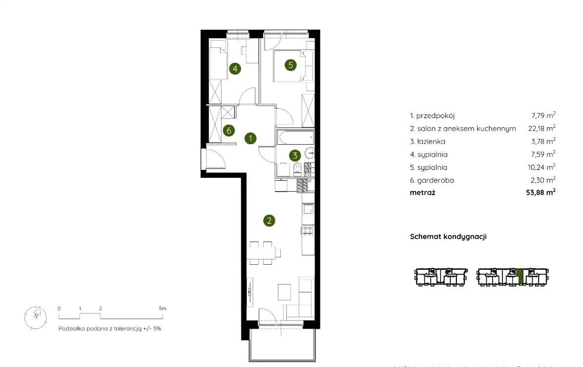 - Charakterystyka mieszkania 53.88 m2, 3 pokoje