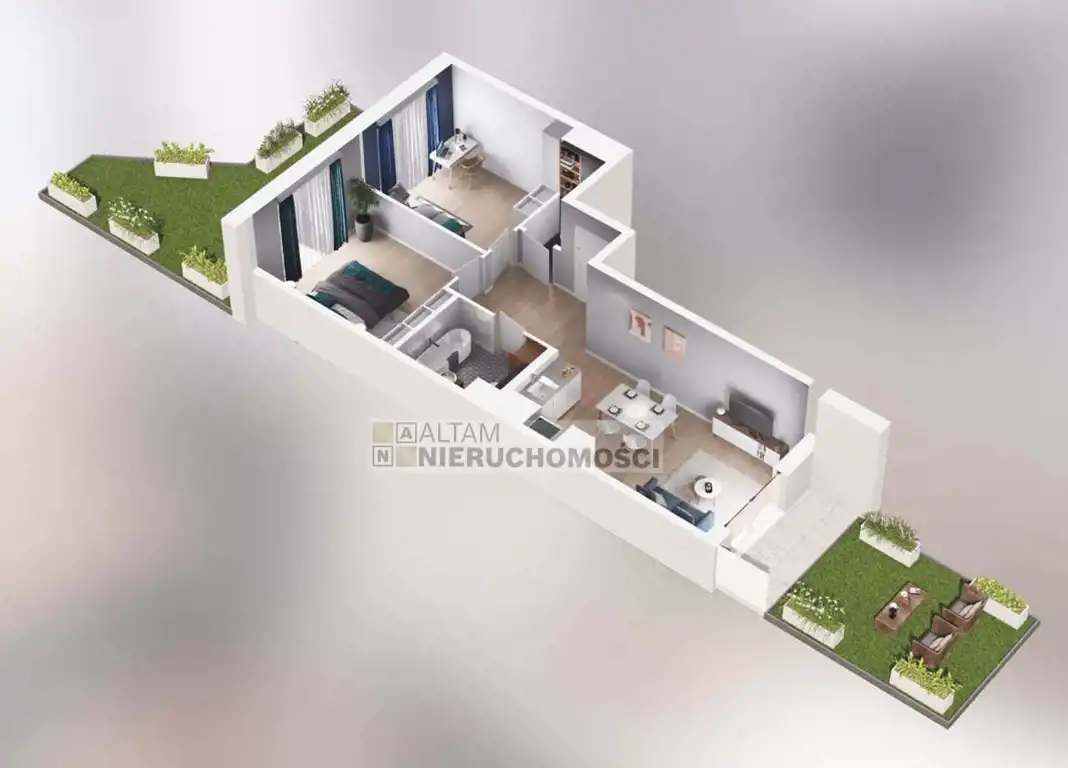 Przedmiotem sprzedaży jest 3-pokojowe mieszkanie z aneksem kuchennym o powierzchni 53,19m² z dwoma ogródkami zlokalizowane na parterze (budynek 9-piętrowy). Cena zawiera VAT. Mieszkania oddawane są w standardzie deweloperskim +.