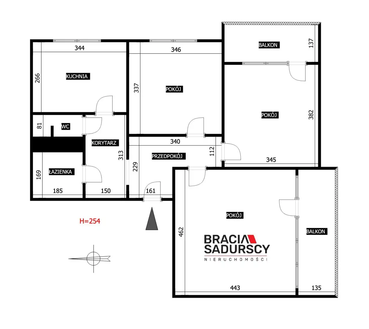 Na powierzchnie mieszkania - 69,94 m2 składają się 3 niezależne, przestronne pokoje o pow. 20,5/ 13,2 / 11,7 m2 , kuchnia o pow 9 m2, łazienka z wanną, oddzielne wc oraz przedpokój. Do mieszkania przynależą dwa balkony - o pow. ok 6,2 i 4,7 m2.