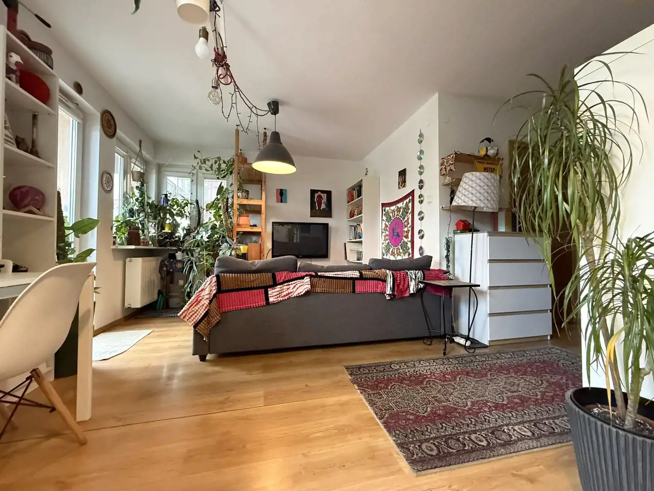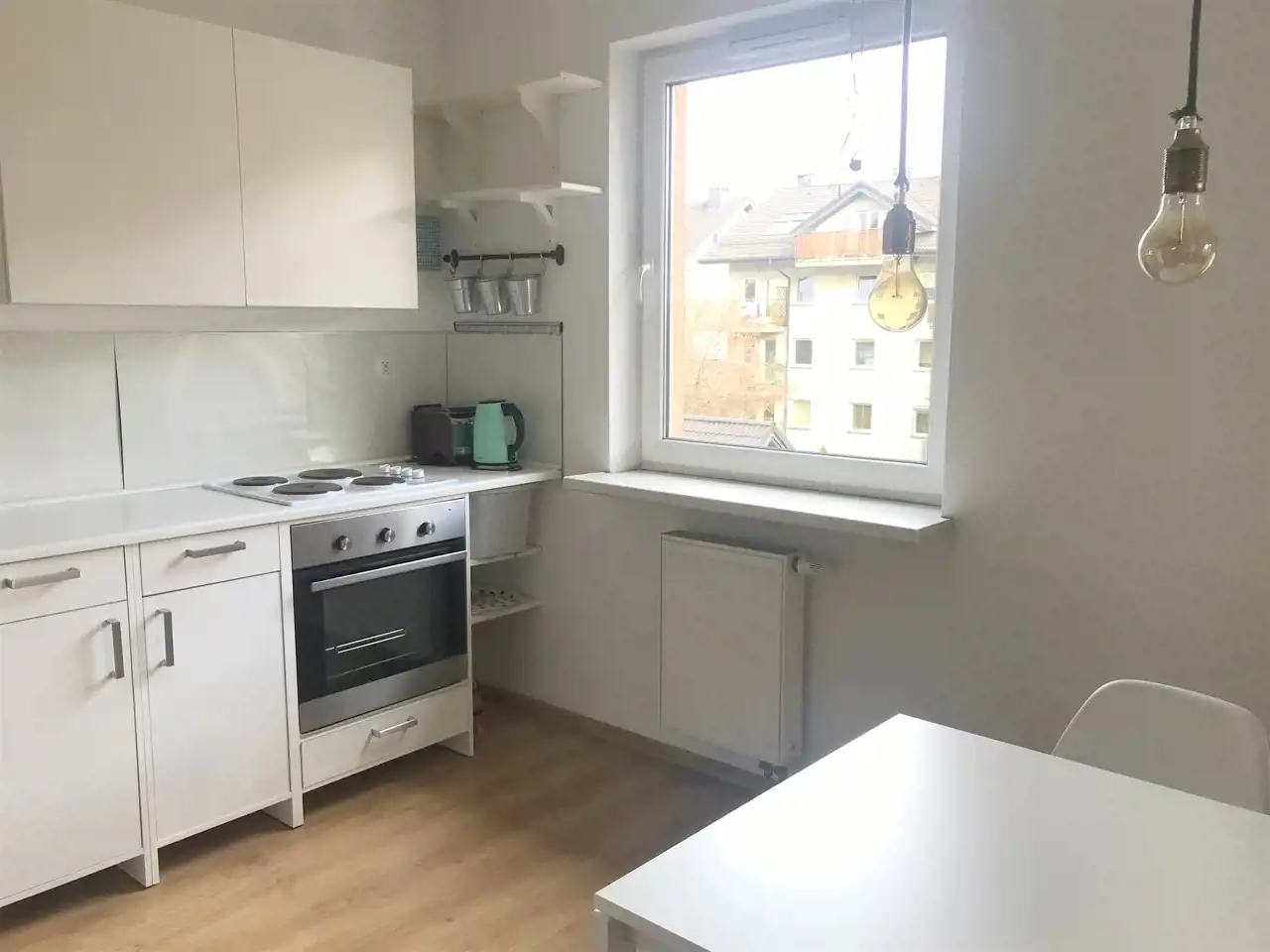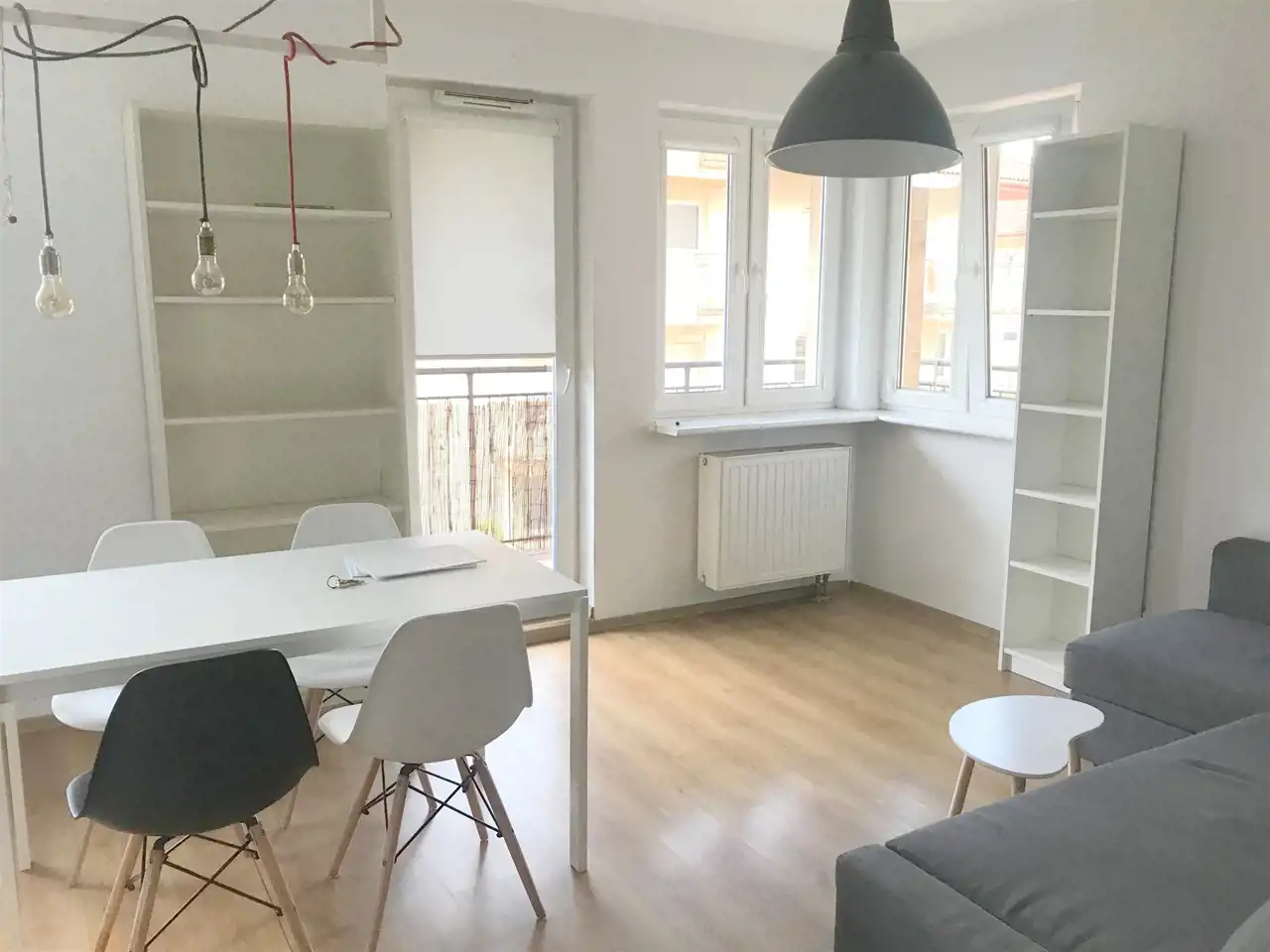 Jest jasne, przestronne, ustawne i daje możliwość dowolnej aranżacji przestrzeni oraz urządzenia według własnych upodobań. Ściana pomiędzy kuchnią a pokojem została wyburzona tworząc otwartą przestrzeń dzienną, ale istnieje możliwość przywrócenia poprzedniego układu.