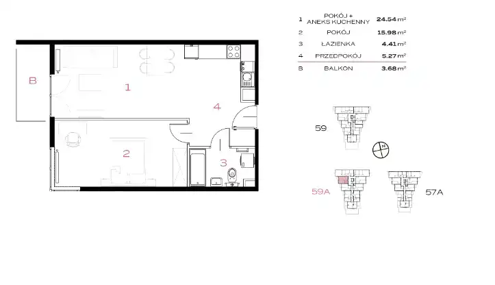 - Charakterystyka mieszkania 50.2 m2, 2 pokoje