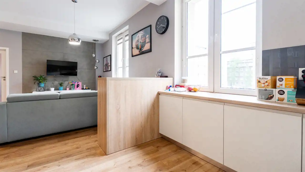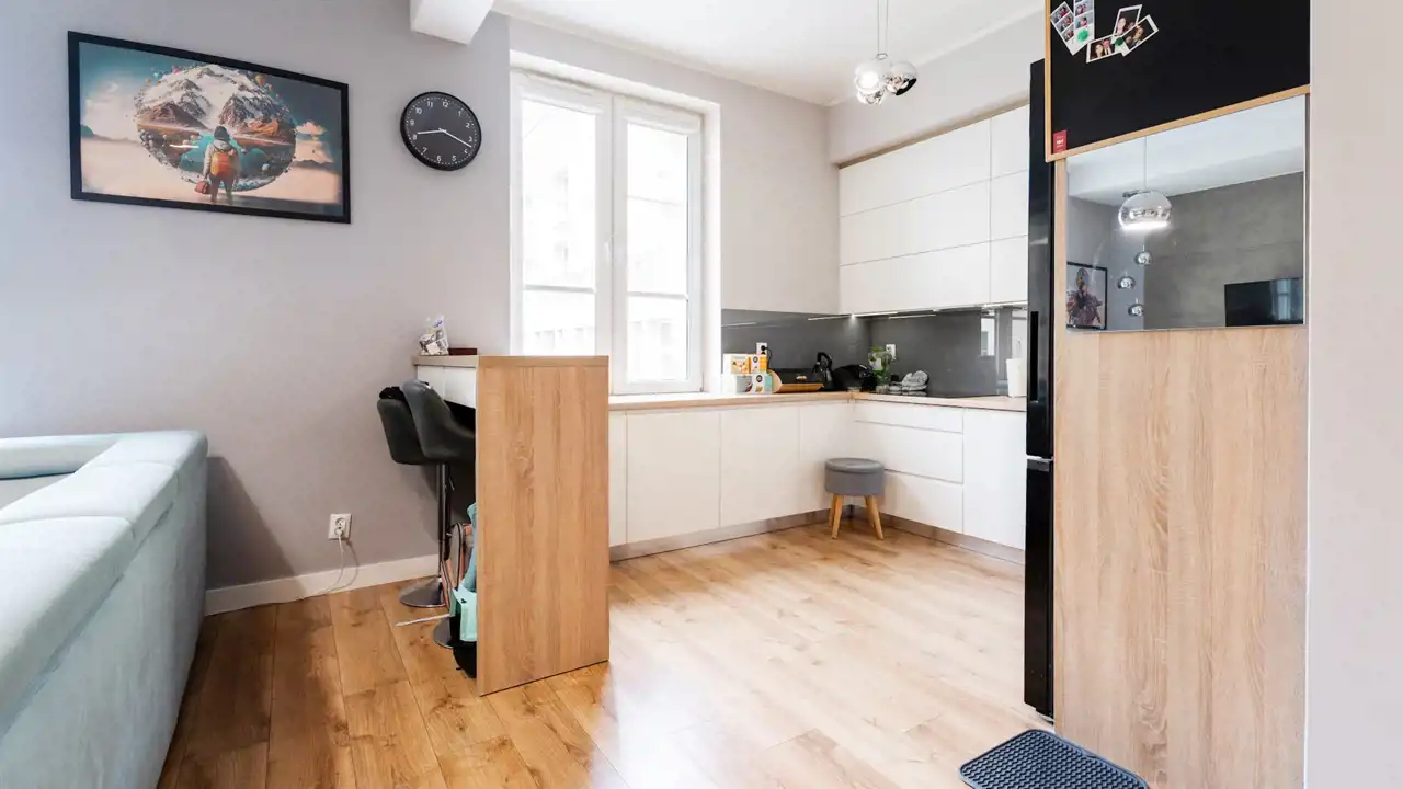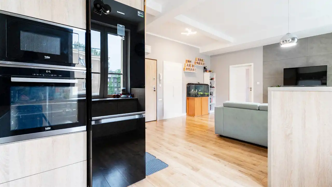 Położone na pierwszym piętrze mieszkanie, ma okna wychodzące na dziedziniec co zapewnia ciszę oraz widok na zieleń. Na 49,77 m2 mieści się pokój z aneksem kuchennym, łazienka oraz sypialnia. Wszystko zostało wykończone w bardzo dobrej jakości, można wprowadzić się bez dodatkowych nakładów finansowych.