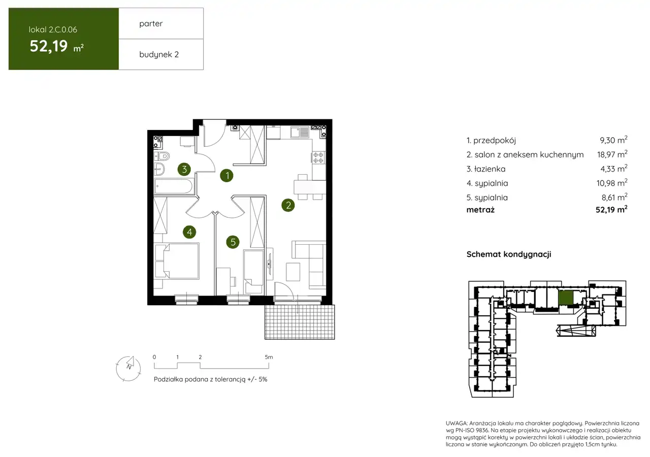 - Charakterystyka mieszkania 52.19 m2, 3 pokoje