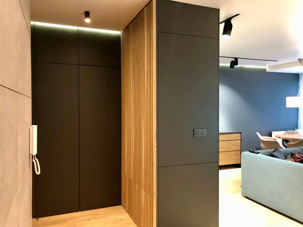 - salon z aneksem kuchennym , sypialnia, łazienka z toaletą oraz korytarz