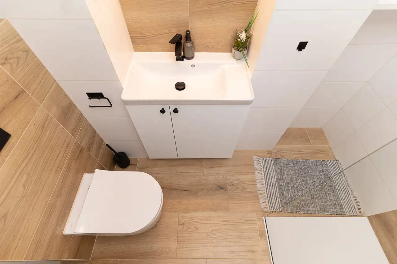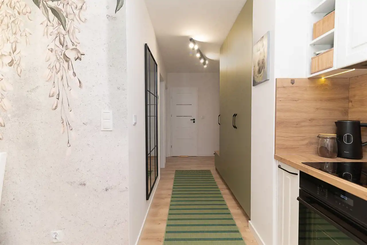 - salon z aneksem kuchennym, dwie osobne sypialnie, łazienka z kabiną prysznicową i toaletą, przedpokój