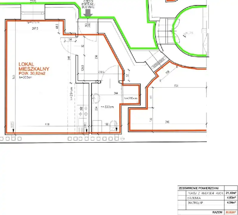 - Charakterystyka mieszkania 30.82 m2, 1 pokój