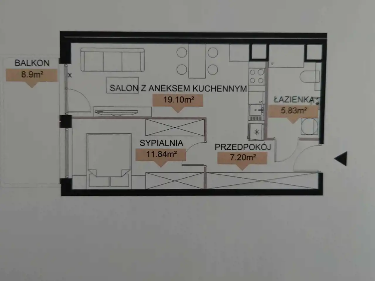 - Charakterystyka mieszkania 43.52 m2, 2 pokoje