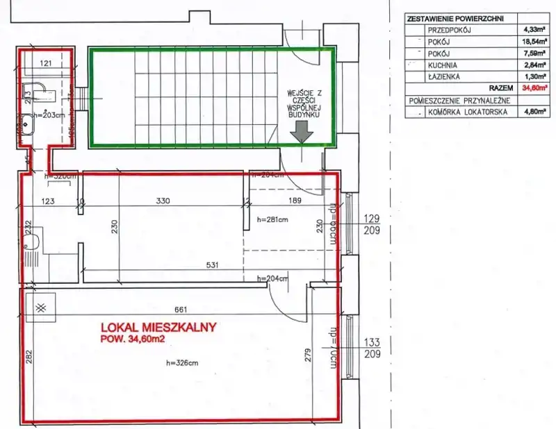 - Charakterystyka mieszkania 34.6 m2, 2 pokoje