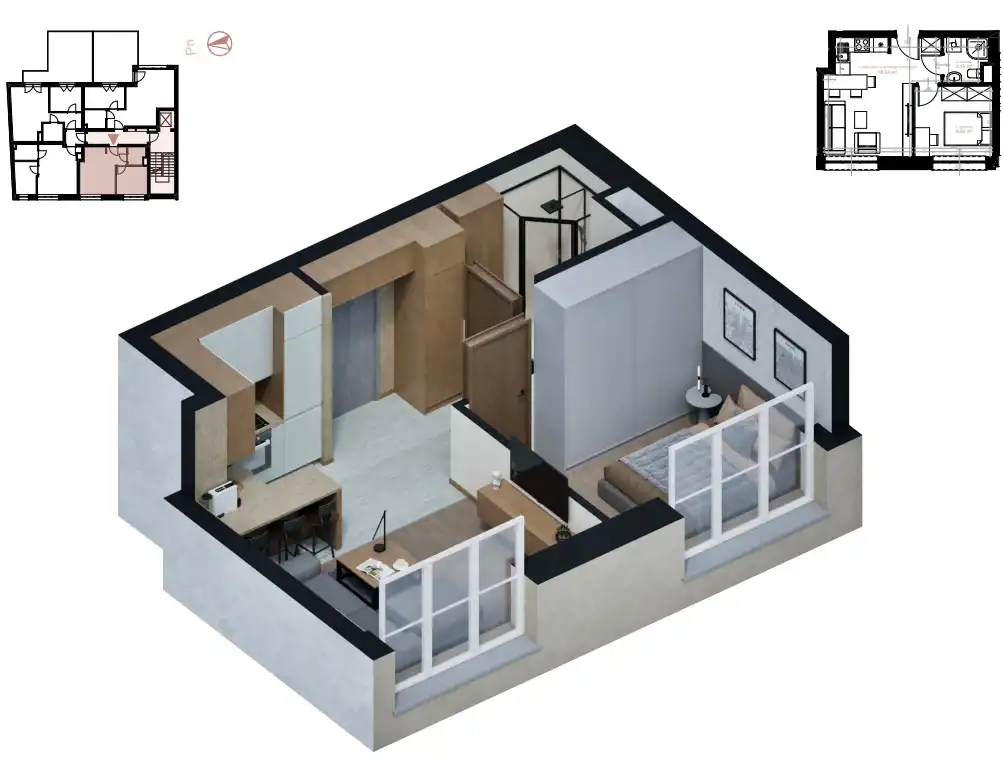 - Charakterystyka mieszkania 32.06 m2, 2 pokoje