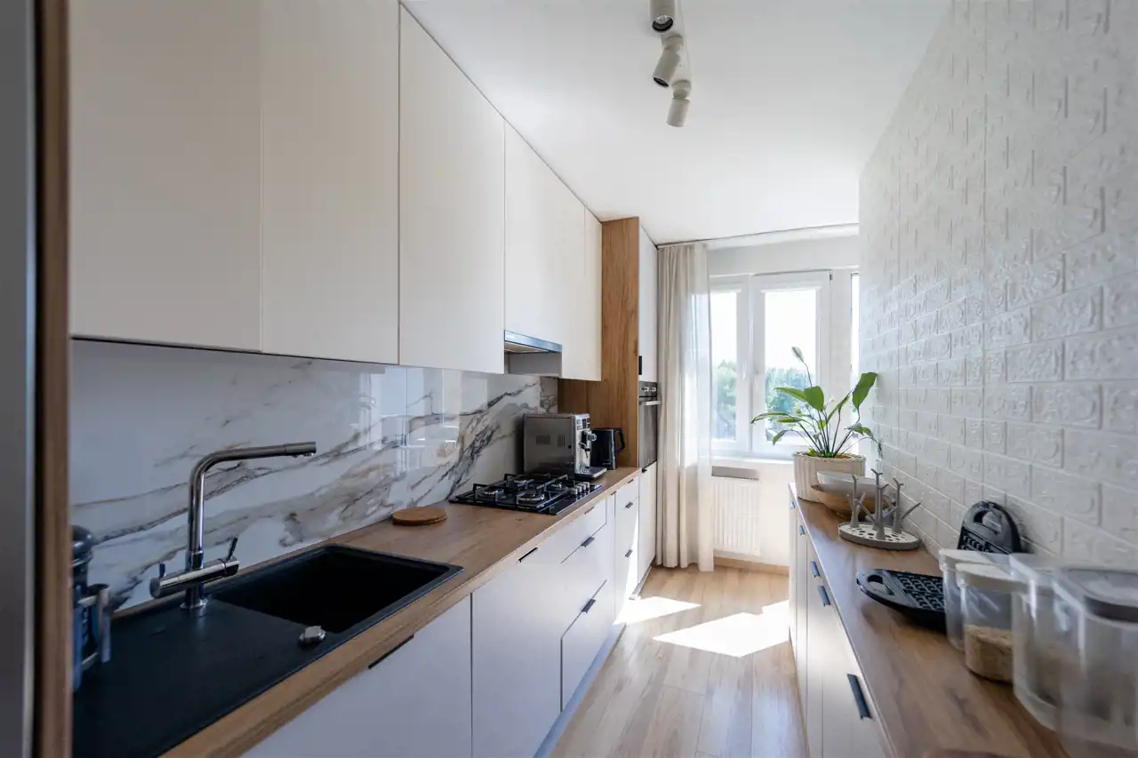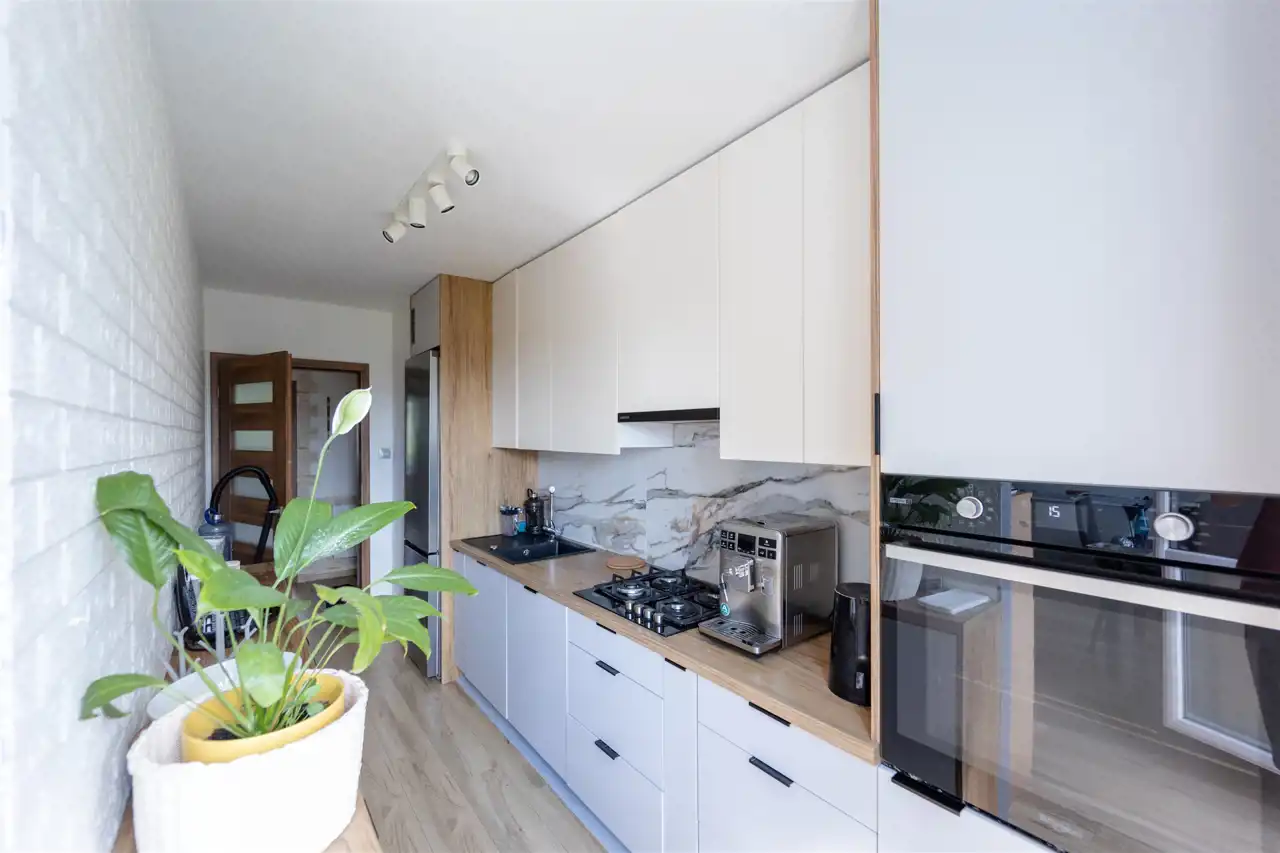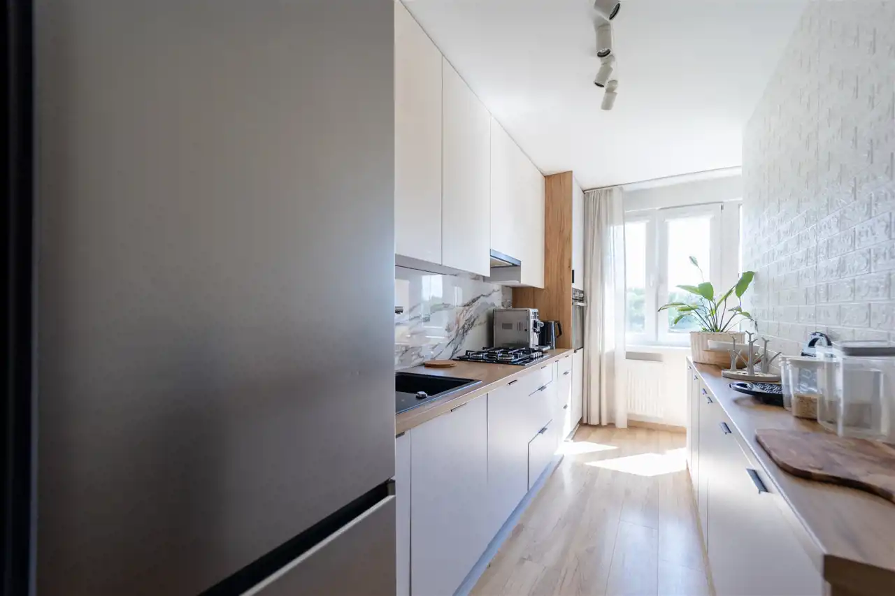 - Jasna, półotwarta kuchnia z pełnym AGD