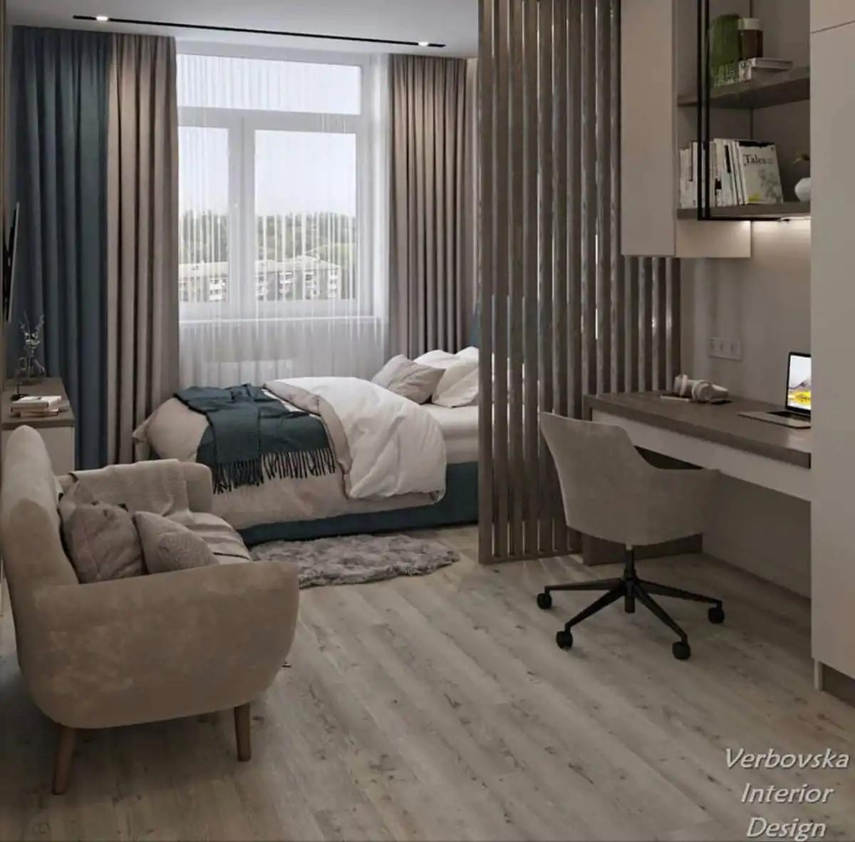 - salonu z aneksem kuchennym,