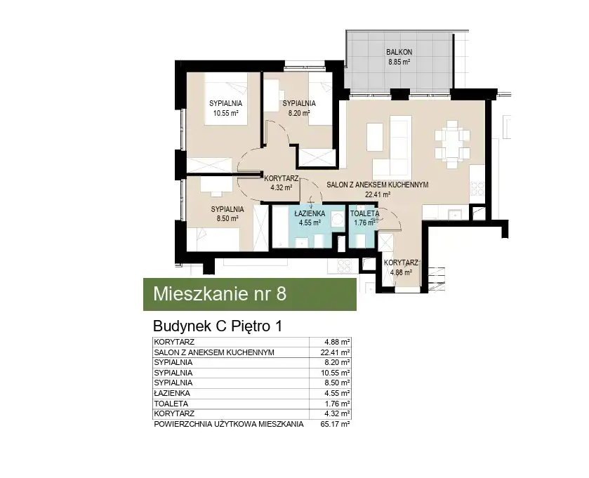 - Charakterystyka mieszkania 65.16 m2, 4 pokoje