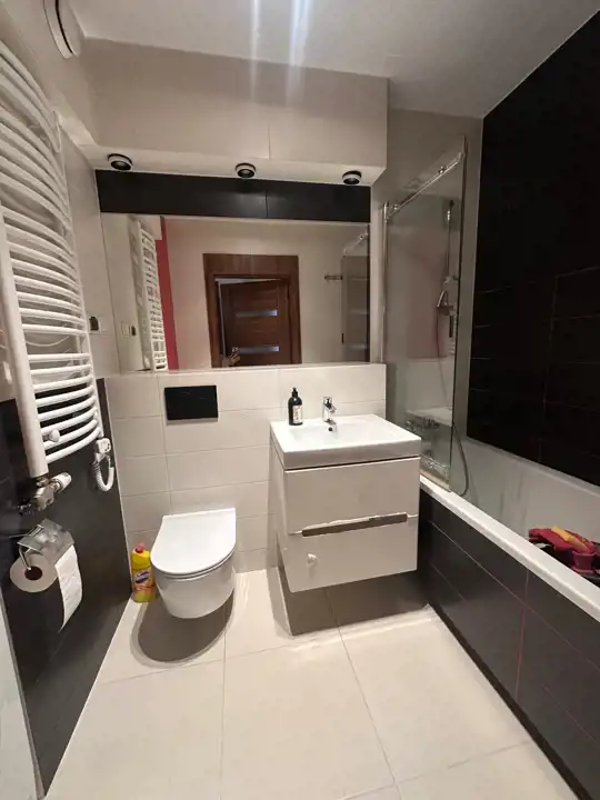 - salon z aneksem kuchennym, dwie sypialnie, łazienka z toaletą, przedpokój