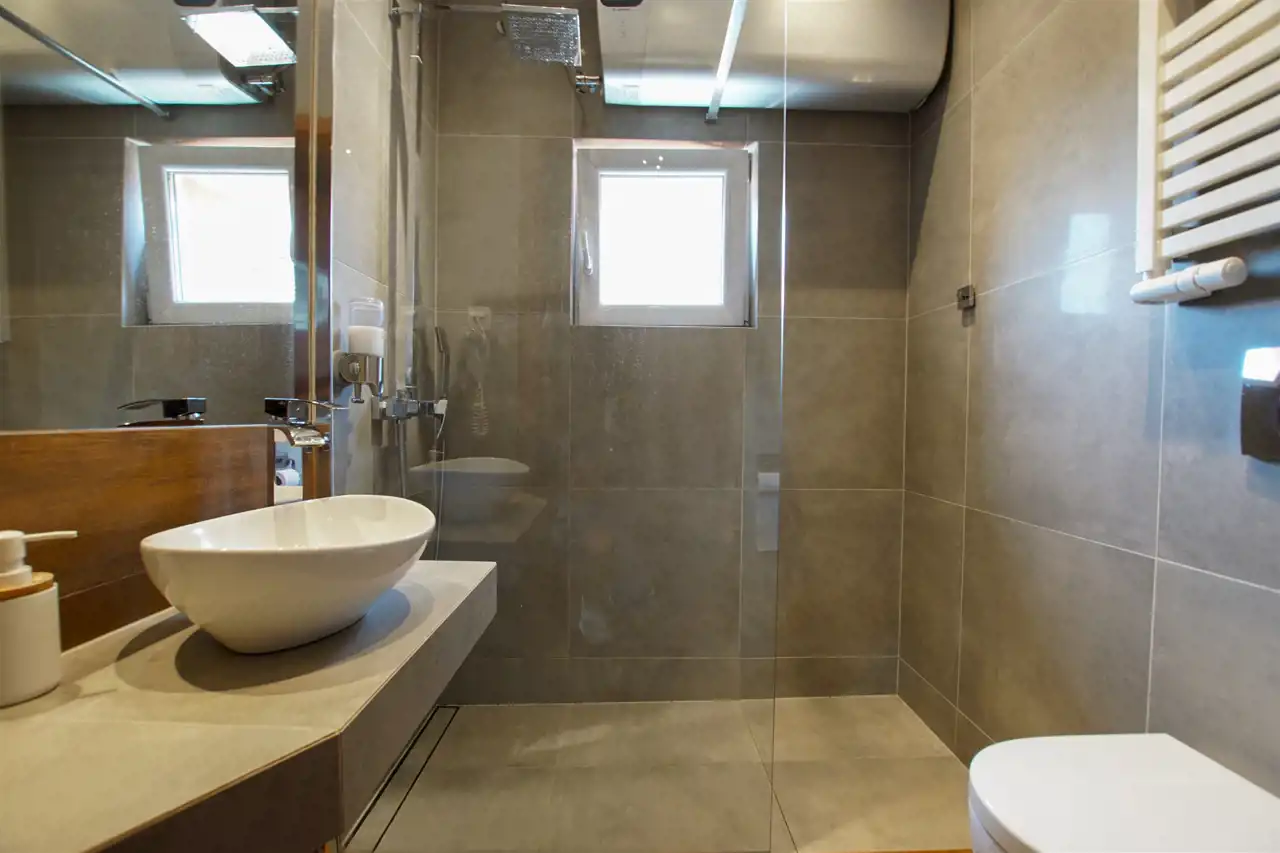 łazienka ładnie wyflizowana, z kabiną prysznicową, z oknem