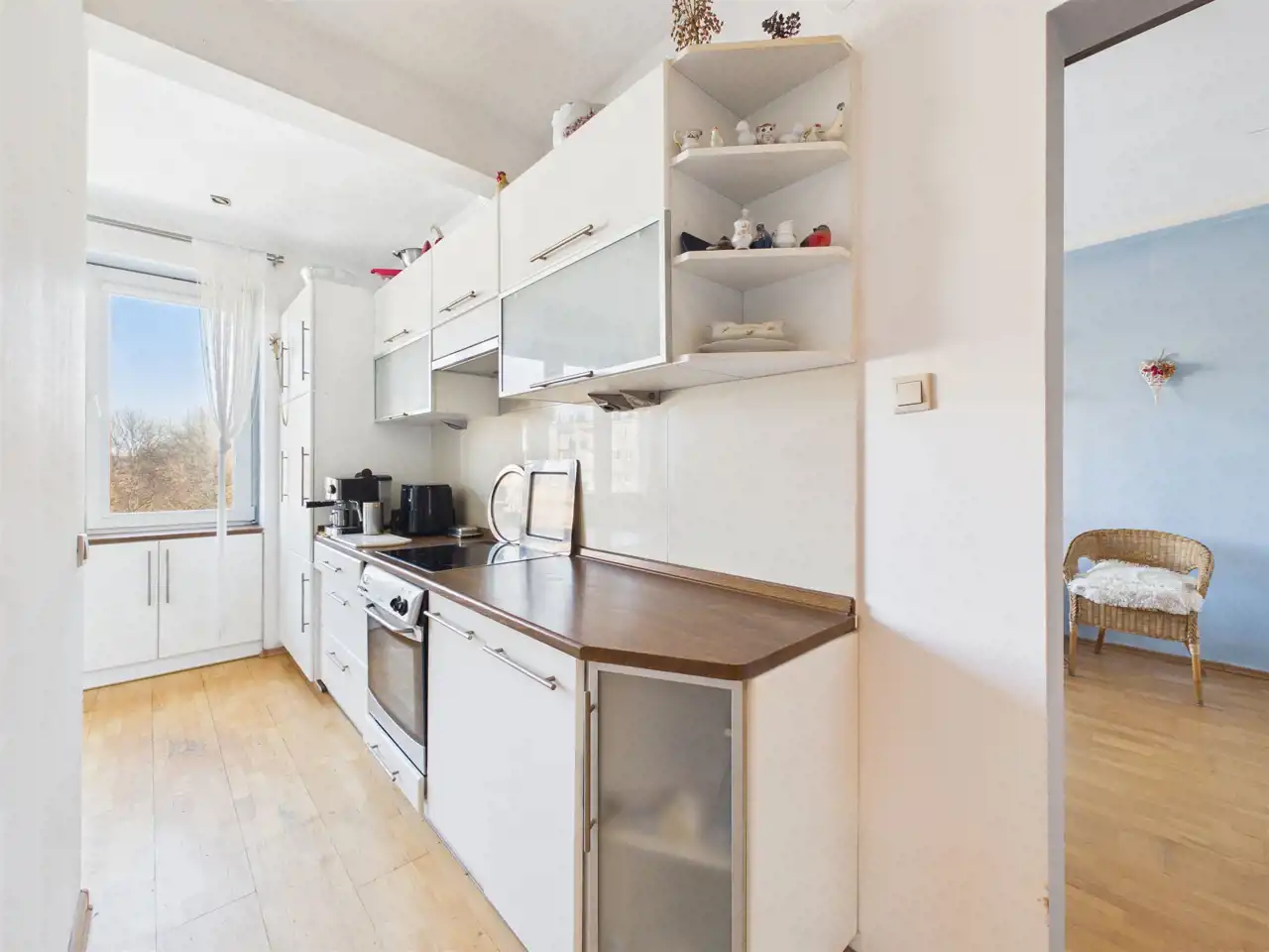 Lokal wymaga odświeżenia - mieszkanie ma doskonały rozkład, pozwalającym również na zmianę zastosowań pomieszczeń czy wyjątkowo proste oddzielenie kuchni od pokoju dziennego.