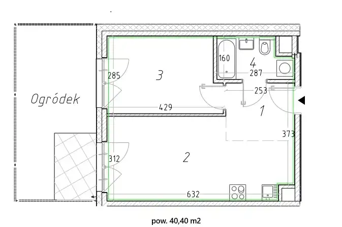 - Charakterystyka mieszkania 40.4 m2, 2 pokoje