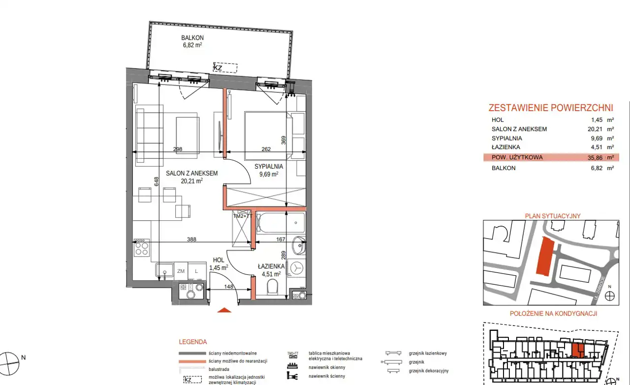 - Charakterystyka mieszkania 35.86 m2, 2 pokoje