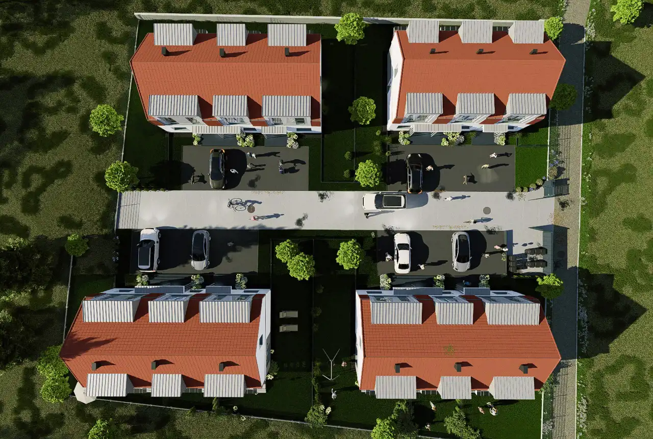 Osiedle Zielony Zakątek Krzyżańskiego to kameralny kompleks czterech budynków w zabudowie bliźniaczej, obejmujących łącznie 12 funkcjonalnych lokali mieszkalnych.
