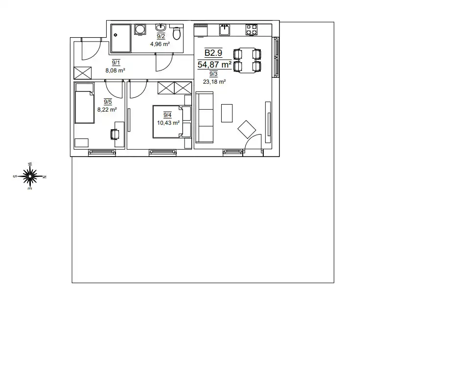 - Charakterystyka mieszkania 54.87 m2, 3 pokoje