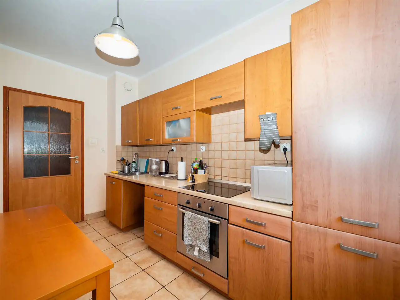 Na wyposażeniu m.in.: płyta indukcyjna, lodówka, piekarnik, pralka.