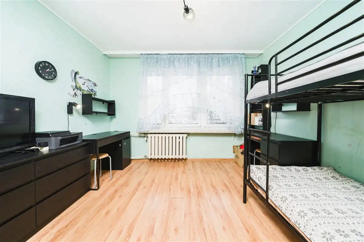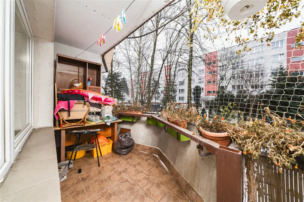 Komfortowe 3 pokojowe mieszkanie z osobną kuchnią o powierzchni 52,40 m2. Mieszkanie znajduje się na wysokim parterze 4 piętrowego budynku, który został wybudowany w latach 80-tych. Ogrzewanie oraz ciepła woda z sieci miejskiej. W kuchni ciepła woda z bojlera elektrycznego. Czynsz w wysokości około 900 zł miesięcznie. Do tego należy doliczyć tylko koszty zużycia prądu oraz gaz. Wystawa mieszkania na stronę północną oraz południową. Dużym atutem mieszkania jest balkon. Do mieszkania przynależy piwnica. Przy bloku wzdłuż ulicy znajduje się parking z ogólnodostępnymi miejscami postojowymi.