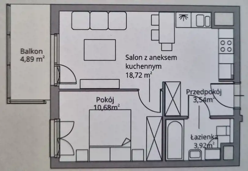 Do mieszkania przynależy balkon - ok. 4,89 m2.