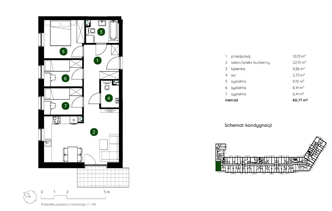 - Charakterystyka mieszkania 60.77 m2, 4 pokoje