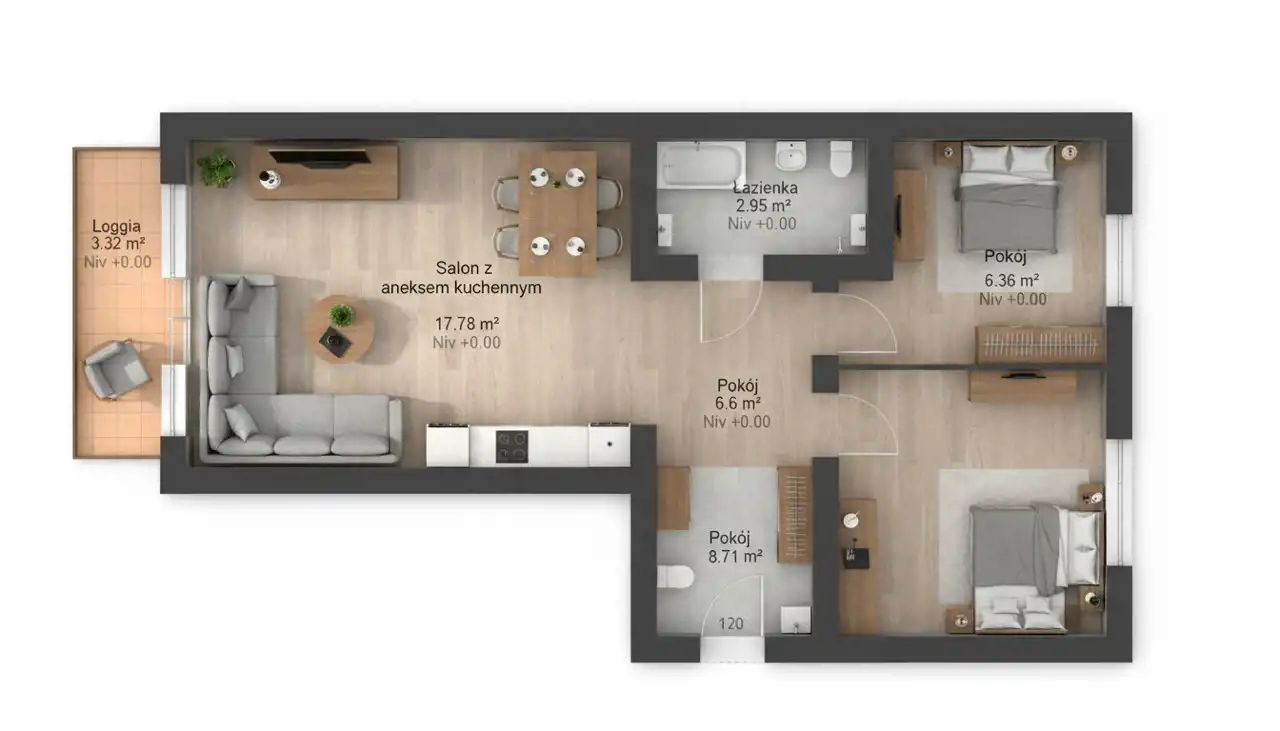 - funkcjonalny przedpokój – 6,6 m²