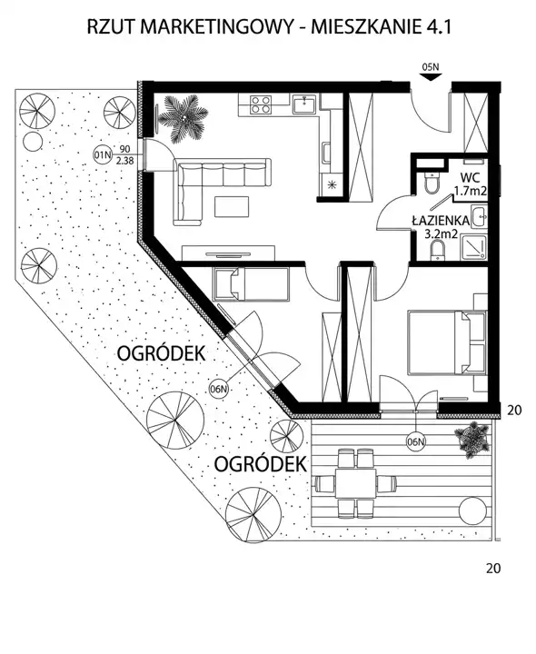 - Charakterystyka mieszkania 54.1 m2, 3 pokoje