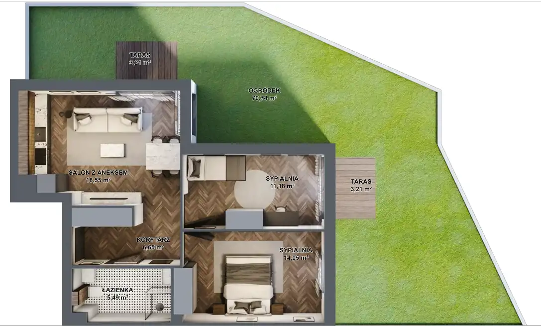 - przestronny ogródek 77,16 m2