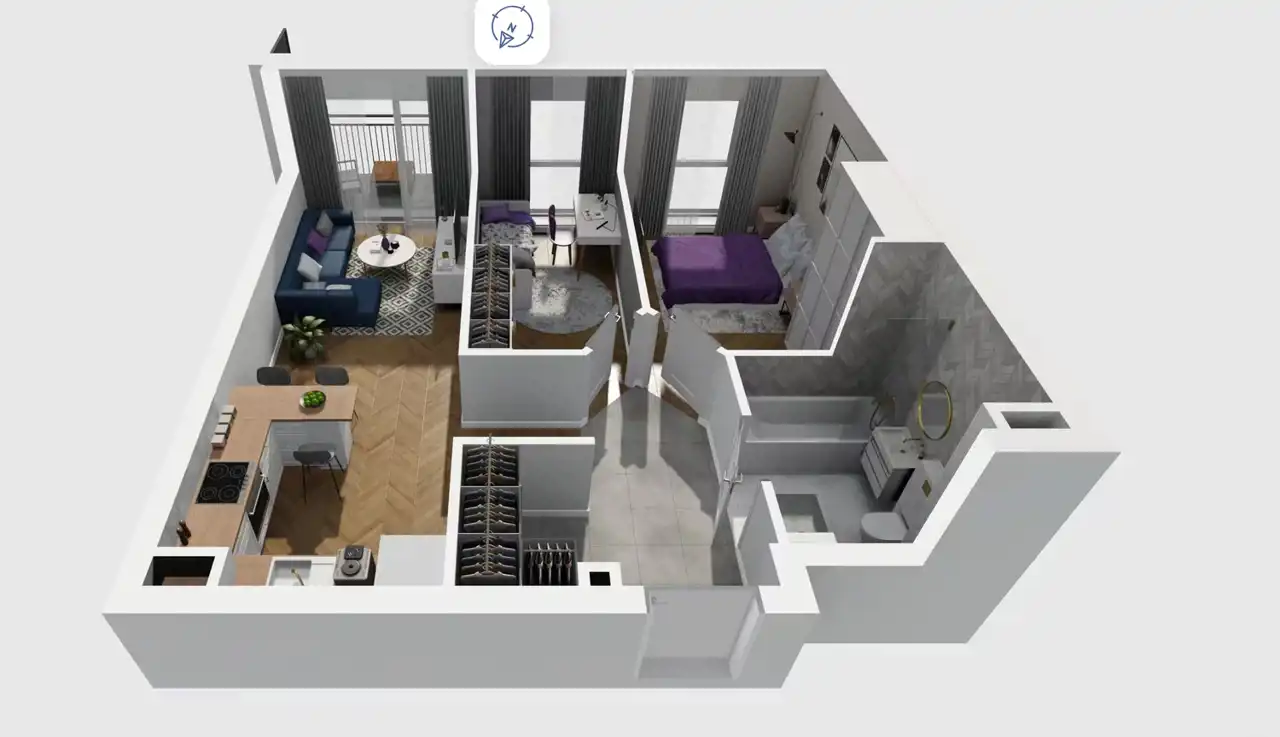 - Charakterystyka mieszkania 51.91 m2, 3 pokoje