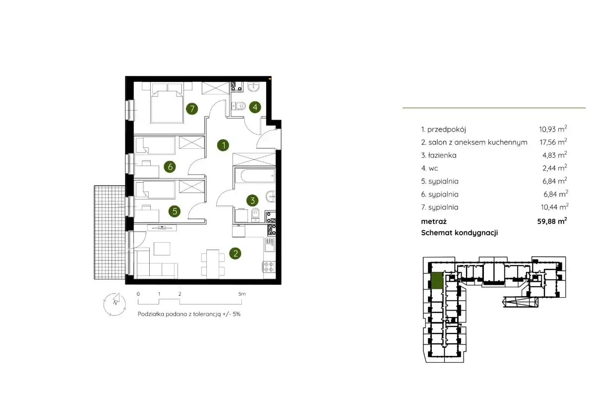- Charakterystyka mieszkania 59.88 m2, 4 pokoje