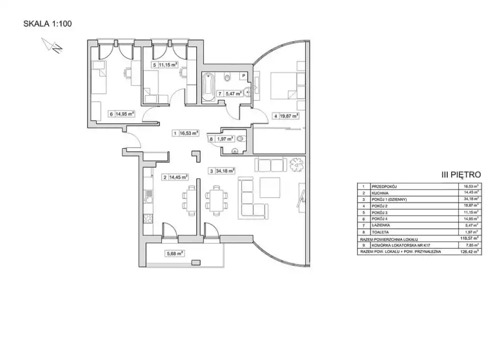 - Charakterystyka mieszkania 118.57 m2, 4 pokoje