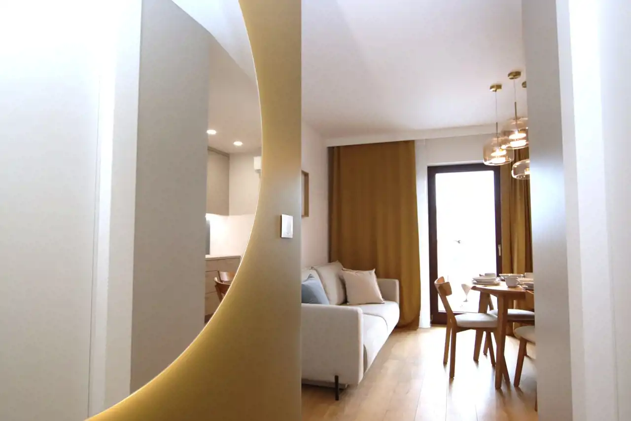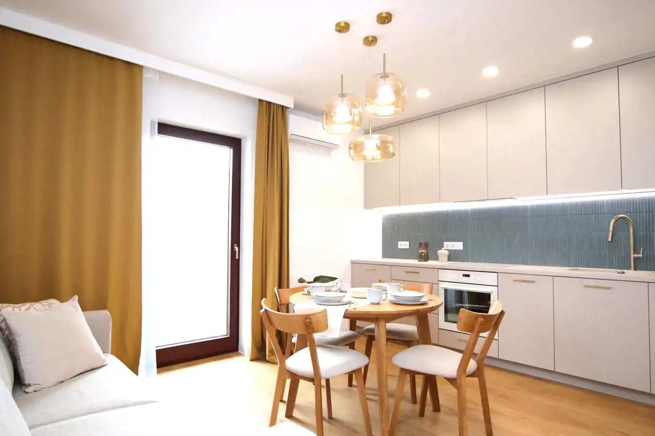 Mieszkanie zostało wykończone w nowoczesnym stylu, z użyciem wysokiej klasy materiałów, z dbałością o detale. Jest gotowe do zamieszkania, oferując funkcjonalny układ wnętrza, który zapewnia komfort codziennego życia. W pobliżu znajduje się pełna infrastruktura handlowo-usługowa, dzięki czemu wszystkie niezbędne udogodnienia są na wyciągnięcie ręki. Do mieszkania przynależy balkon i wyposażone jest w klimatyzację, a mieszkańcy mają do dyspozycji bezpłatny parking na terenie osiedla.