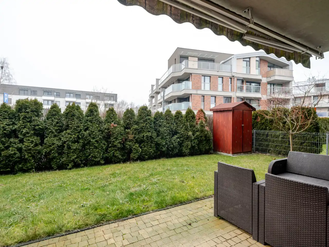 Ogródek z zachodnim widokiem – idealny na relaks przy zachodzie słońca. Brak bezpośredniego sąsiedztwa na przeciwko innych bloków zapewnia ciszę i poczucie przestrzeni.