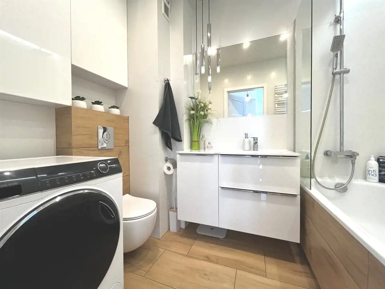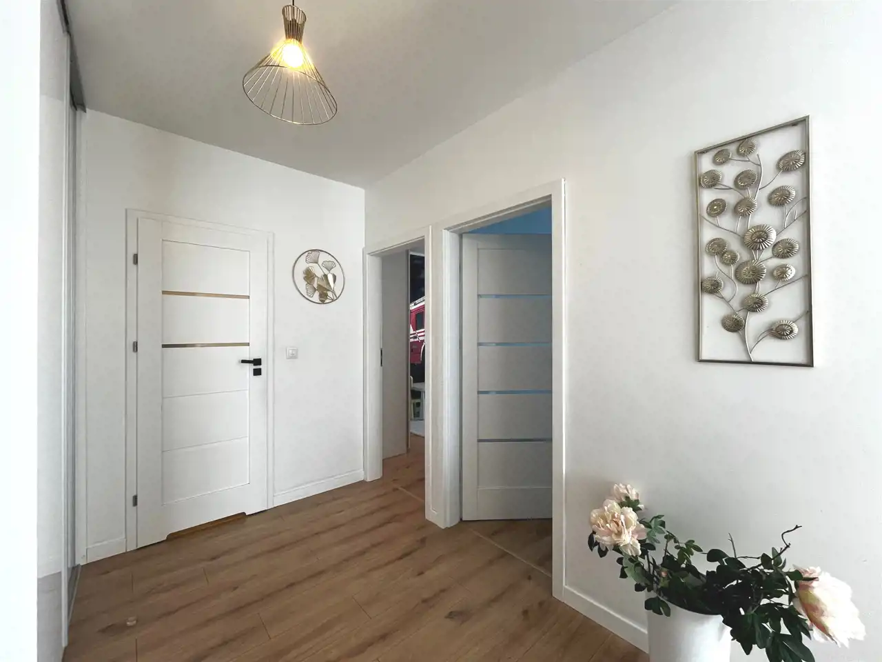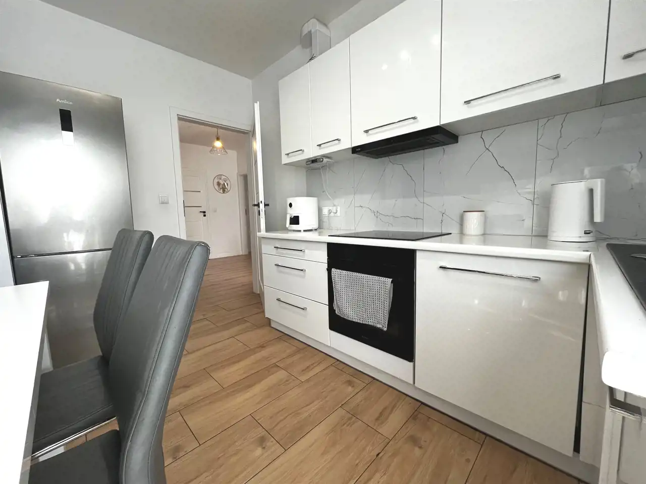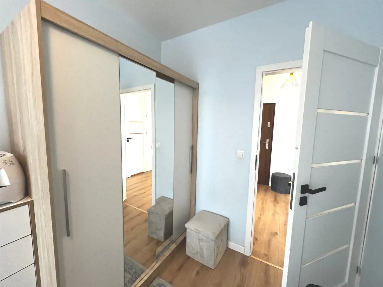 Mieszkanie praktycznie nowe, budynek z 2021r. składa się z 2 sypialni, salonu z klimatyzacją, oddzielnej i wyposażonej kuchni, łazienki, przedpokoju, 2 balkonów , oraz 2 miejsc parkingowych ( 1 w garażu, drugie zewnętrzne).