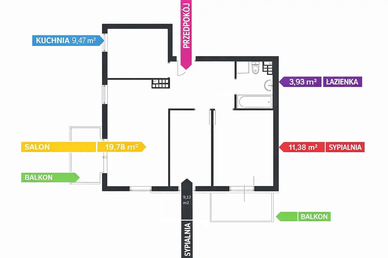 - Charakterystyka mieszkania 61.76 m2, 3 pokoje