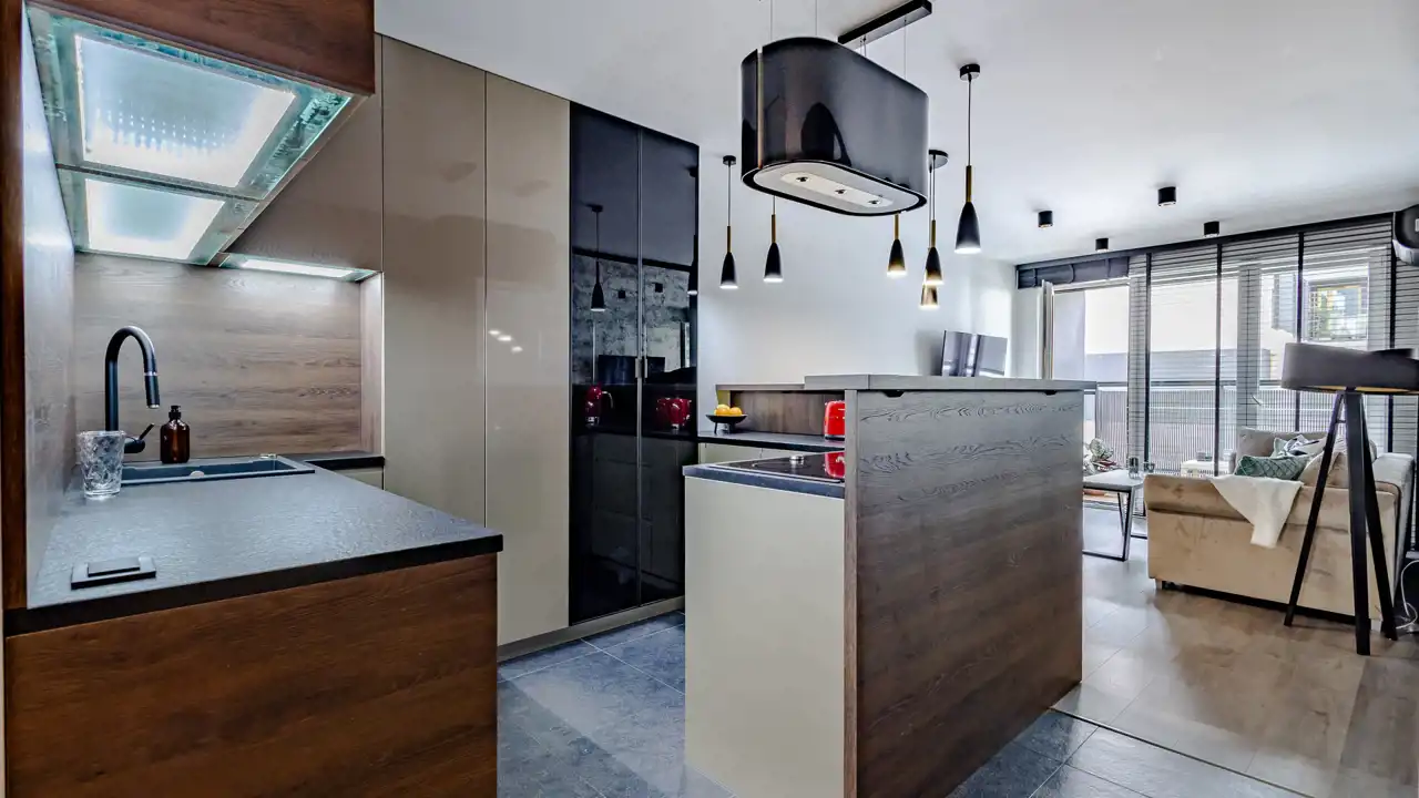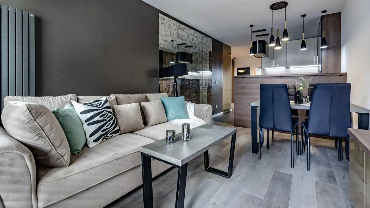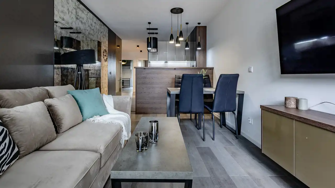 Mieszkanie wykończone z dużą dbałością o detale, z wykorzystaniem wysokiej klasy materiałów.