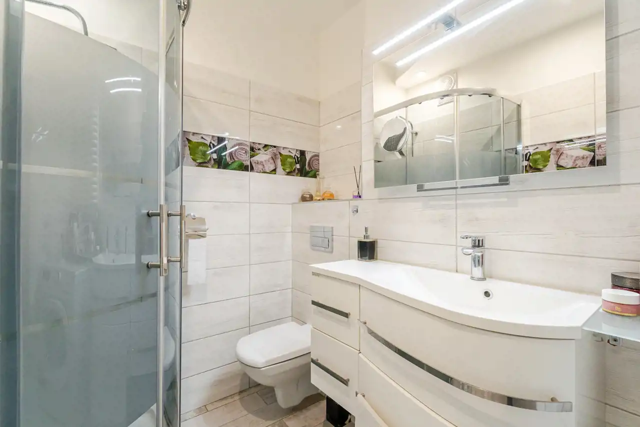 - Media Ogrzewanie: C.O. miejskie; Woda: ciepła - miejska; Gaz: brak