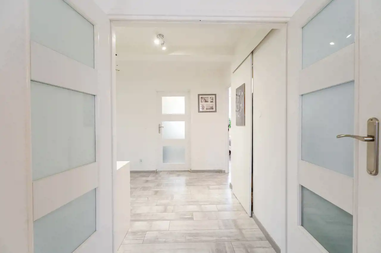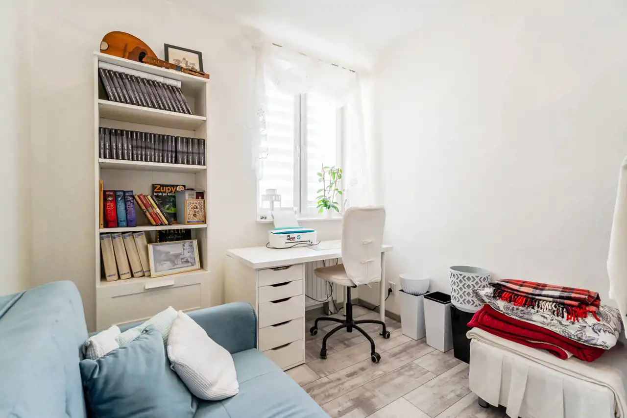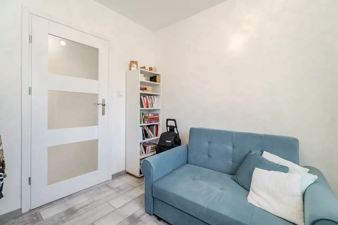 Mieszkanie po generalnym remoncie w 2017 r. Składa się z pokoju dziennego z aneksem kuchennym (25,0 m2) z wyjściem na balkon, 2 sypialni (11,20 m2 i 7,75 m2), łazienki (4,0 m2), garderoby (3,25 m2), spiżarki (pierwotnie wc) oraz przestronnego przedpokoju. Ekspozycja okien w pokoju dziennym z aneksem - zachodnia, w sypialniach-wschodnia.