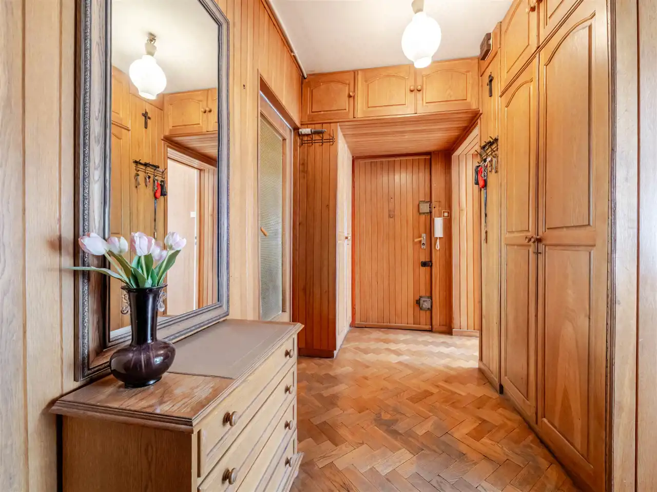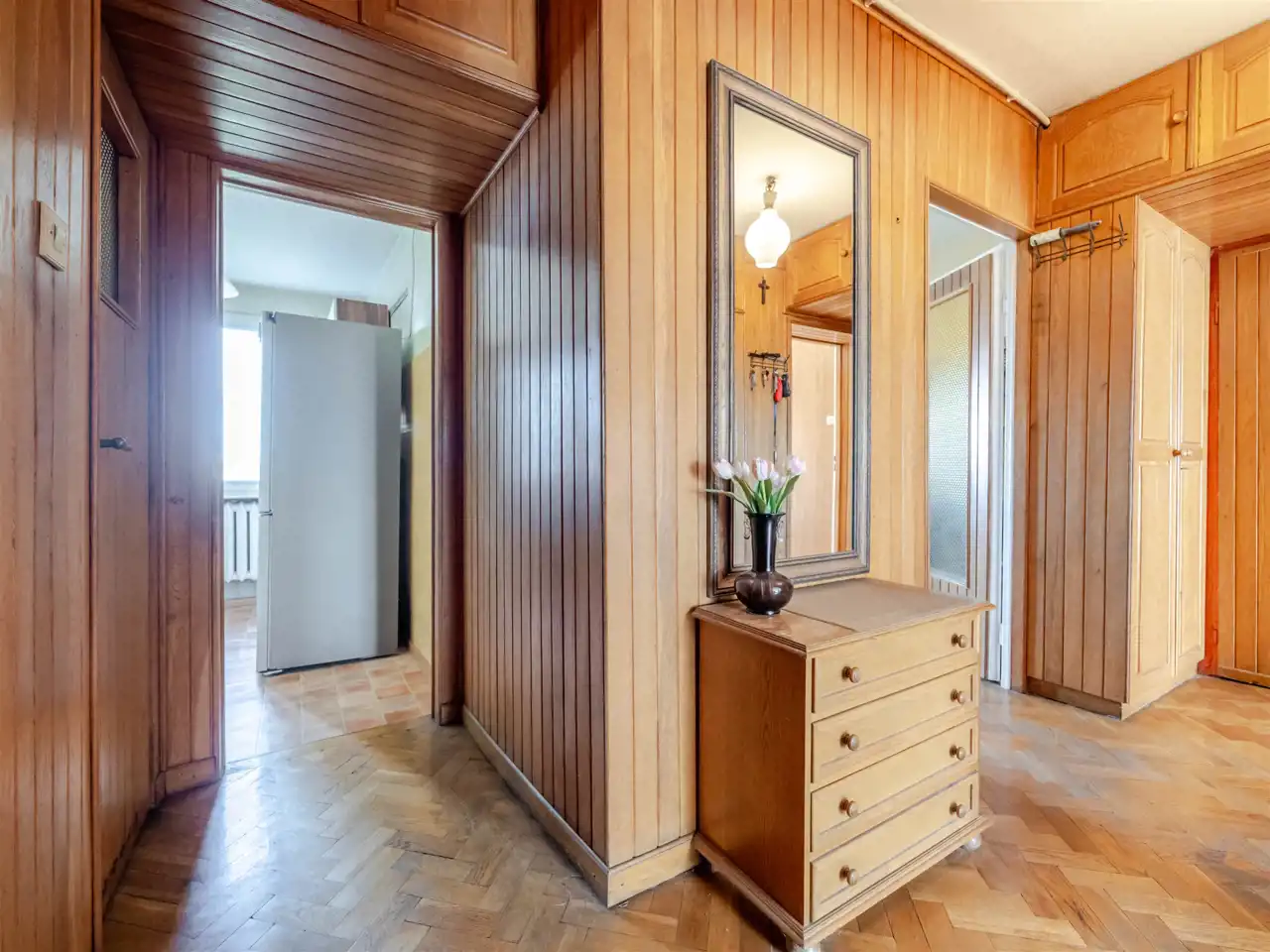 Przedpokój ma dwie duże szafy, gdyby była taka potrzeba można zrobić jeszcze jedną. Na podłodze w pokojach leży parkiet, a ściany są malowane.