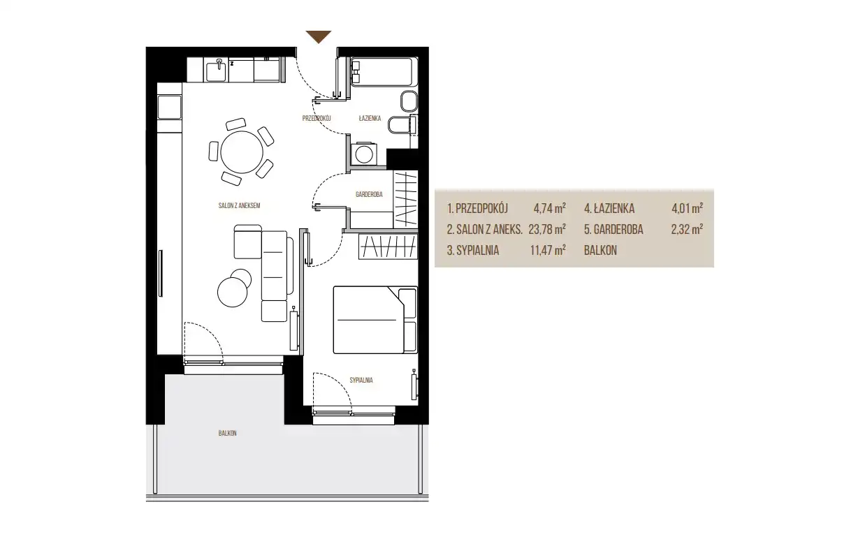 • Charakterystyka mieszkania 46.32 m2, 2 pokoje
